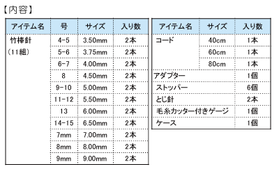 そのほかに、とじ針や毛糸カッター付きゲージ、ケースが付いています。